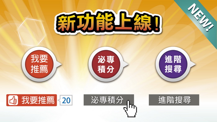 新功能介紹影片- 我要推薦.泌專積分.進階搜尋